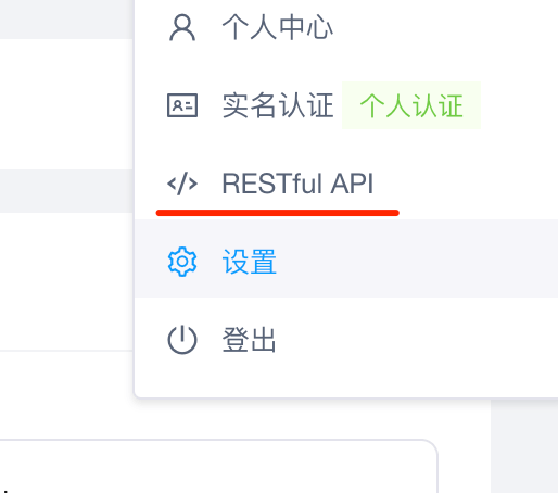 在用户管理里面,找到 Restful API,然后创建一个新的 restappid 和restappscret