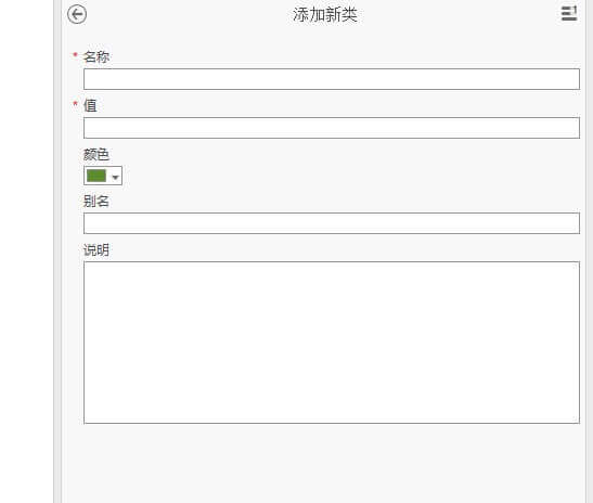 新建新的分类,填写名称,数值,还有颜色,别名。