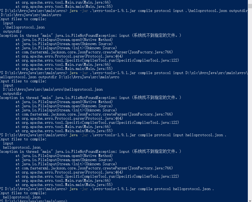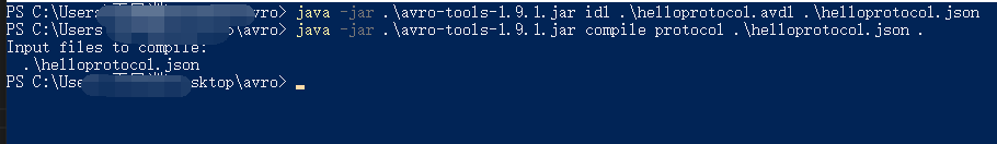 java -jar .\avro-tools-1.9.1.jar compile protocol .\helloprotocol.json .