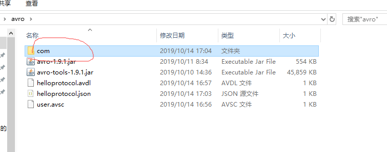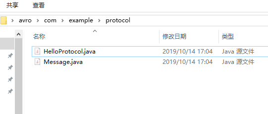 avro_tool工具将自动生成类文件夹: