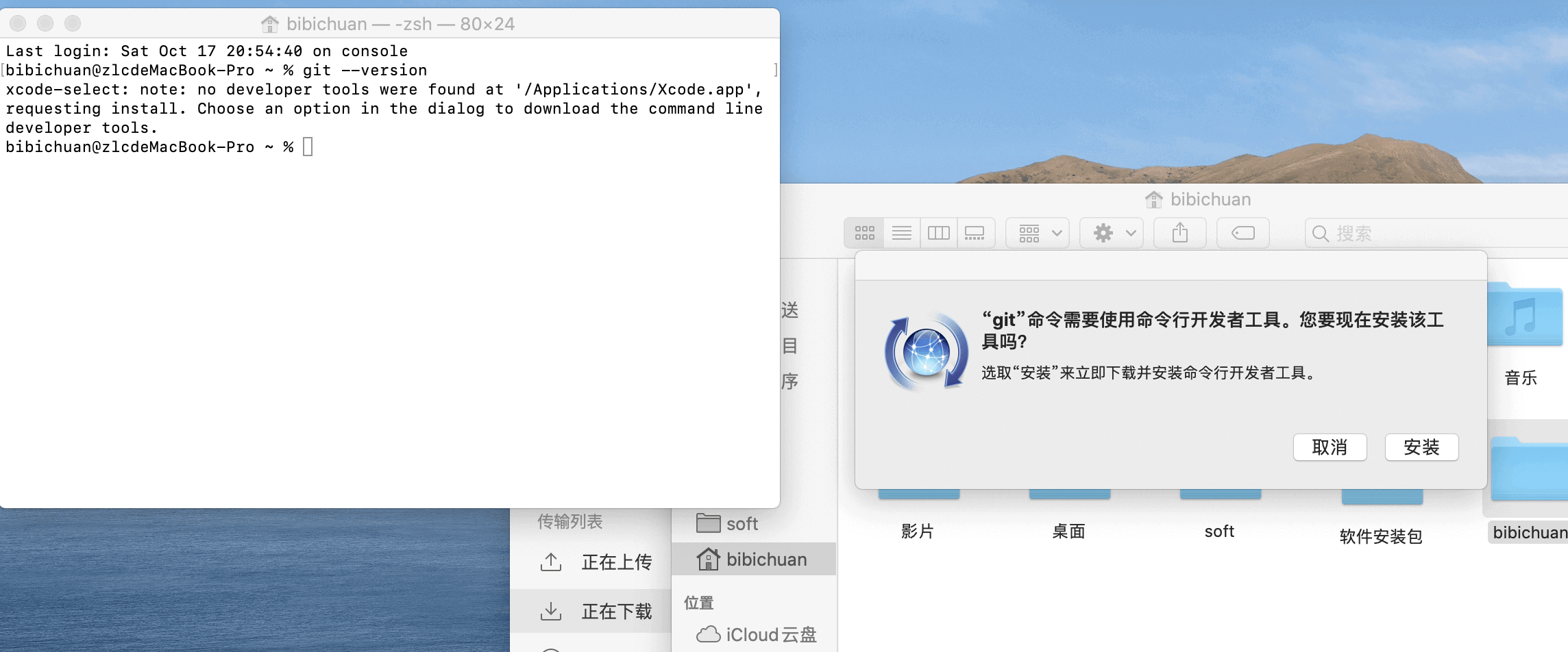 (2) 系统就会提示你安装git需要使用Xcode,