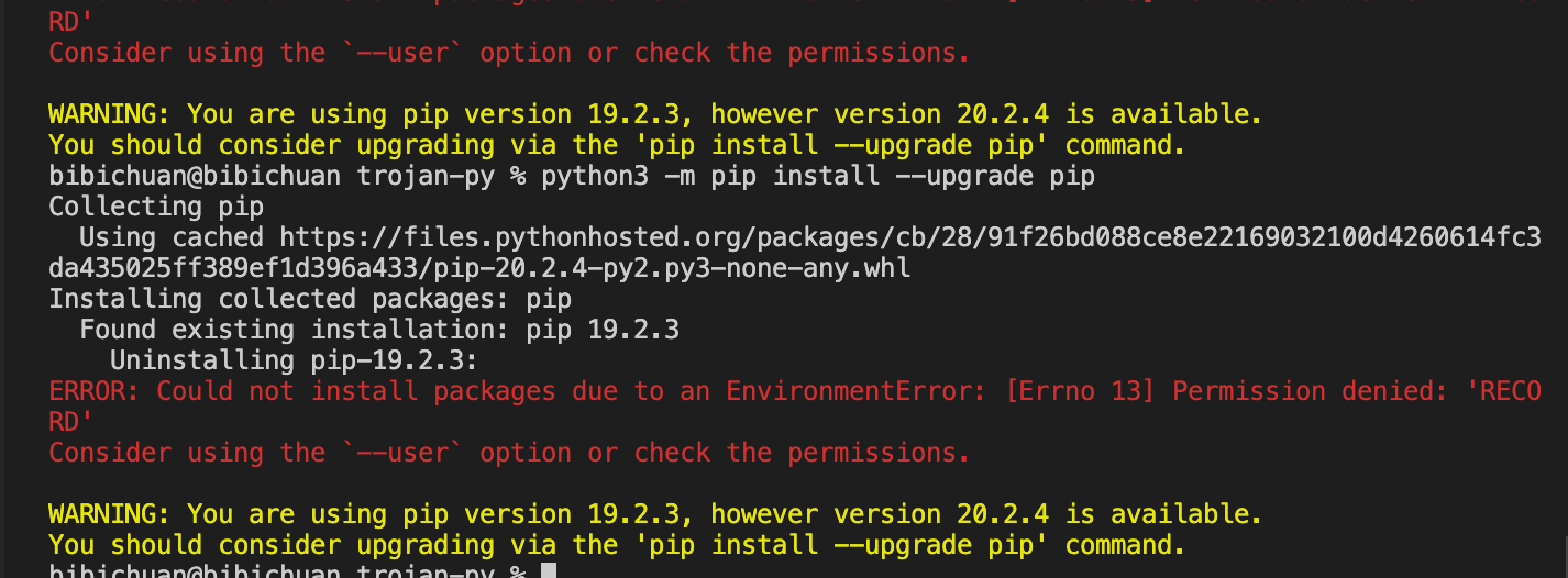 1 | pip3 install --upgrade pip --users |