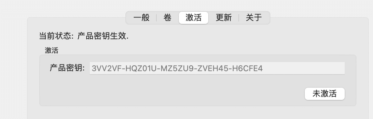 我用了参考文章4中版本,安装的时候会提示说版本过期了,这个不用管,直接安装就好了。密钥:3VV2VF-HQZ01U-MZ5ZU9-ZVEH45-H6CFE4 ,在偏好设置里面查看状态