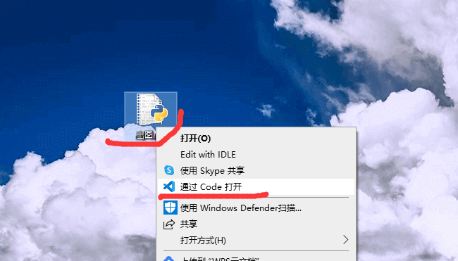(1) 右键选择py文件,选择打开方式,VSCode打开。