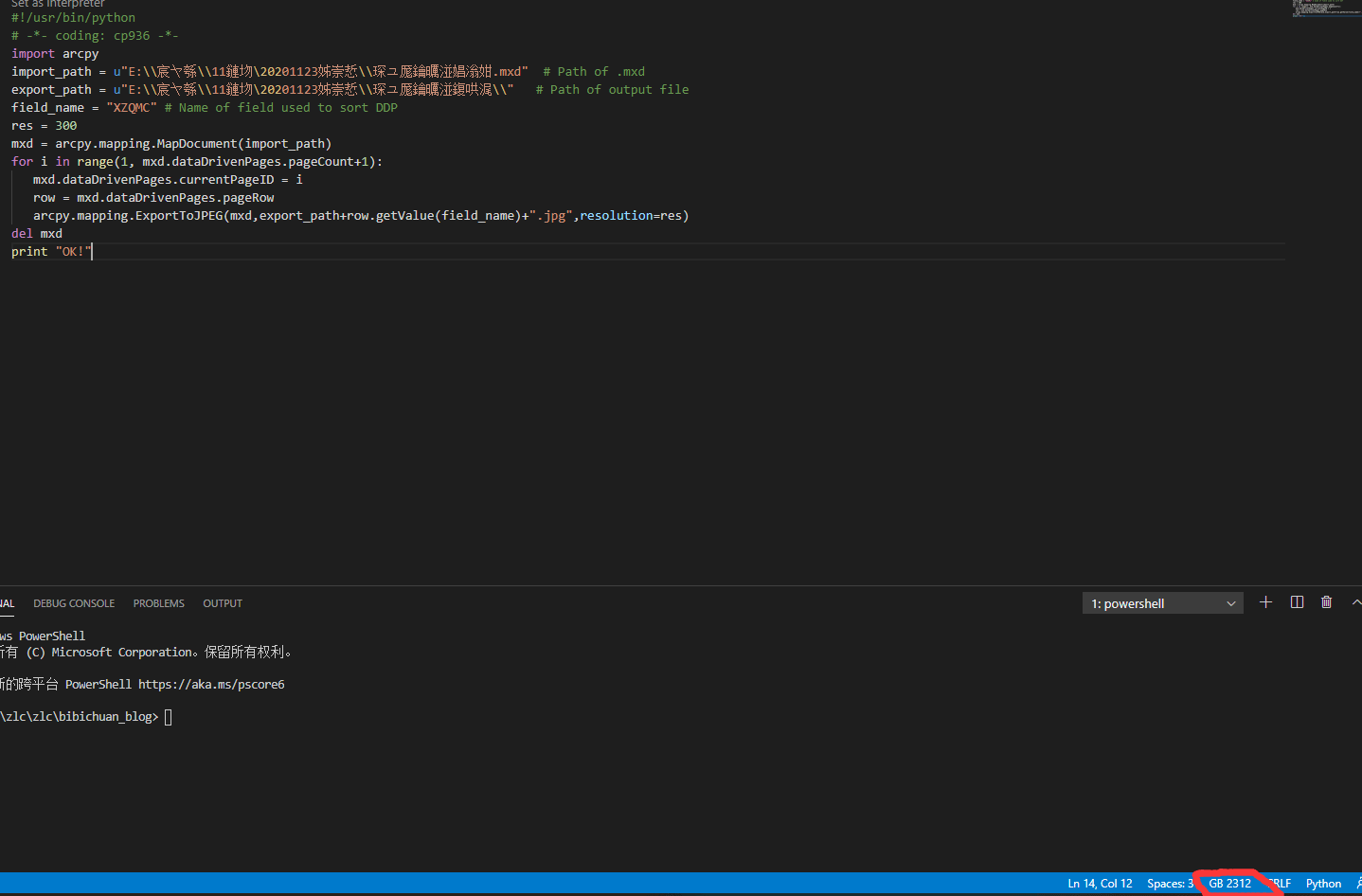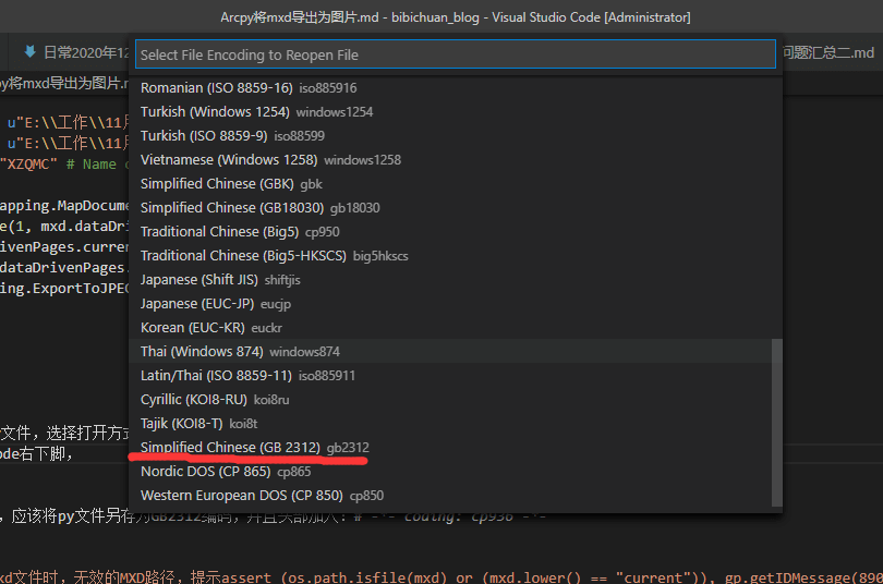 (5) 再次查看VSCode右下角,显示为GB2312。