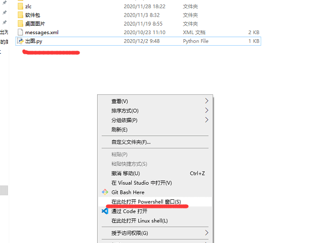 (7) 打开出图工具所在的文件夹,在任意空白处按住Shift,并单击鼠标右键,选择在此处打开Powershell窗口