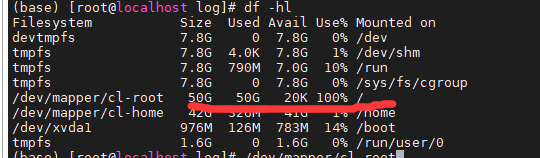 3./dev/mapper/cl-root 100%满了 (查找大文件,然后进行删除)