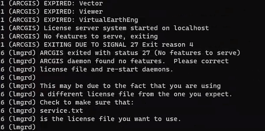 1.Arcgis license 服务无法启动的解决问题 lmgrd -z -c service.txt 查看为什么无法启动。