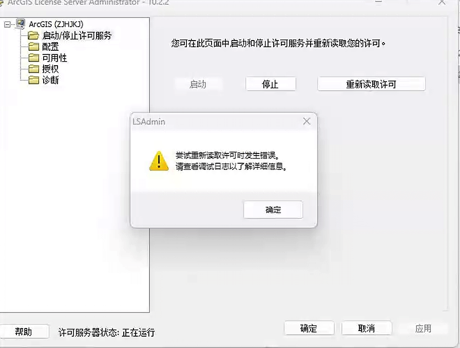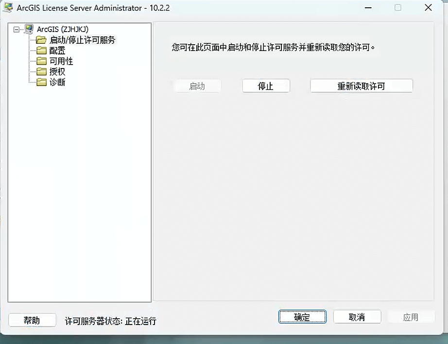 打开开始菜单,找到 ArcGIS 文件夹,打开 “ArcGIS License Server Administrator” 工具,重新读取许可。