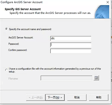 (2) 安装之后进行配置,选择开始菜单ArcGIS文件夹,打开 “Configure ArcGIS Server Account”,进行账号配置。账号密码不能太过简单了,否则也不行。