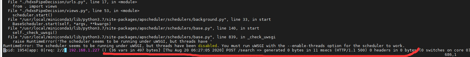 使用了Django的定时任务之后,启动uwsgi出现这样的错误。