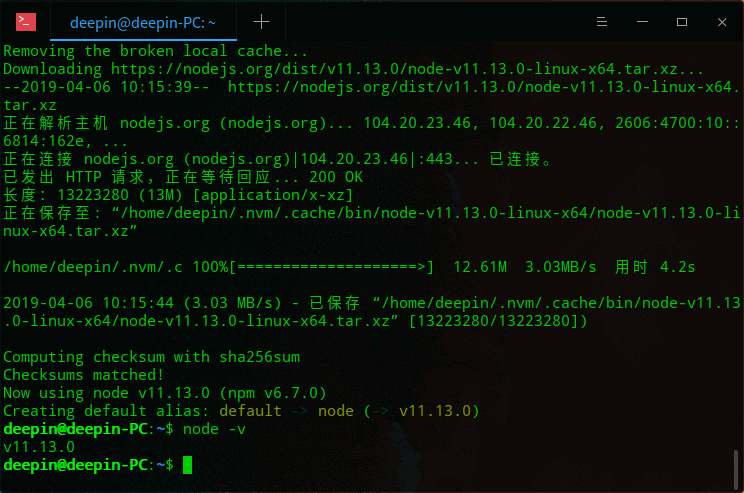 安装完成,不需要其他的操作即可使用最新版的nodejs了。