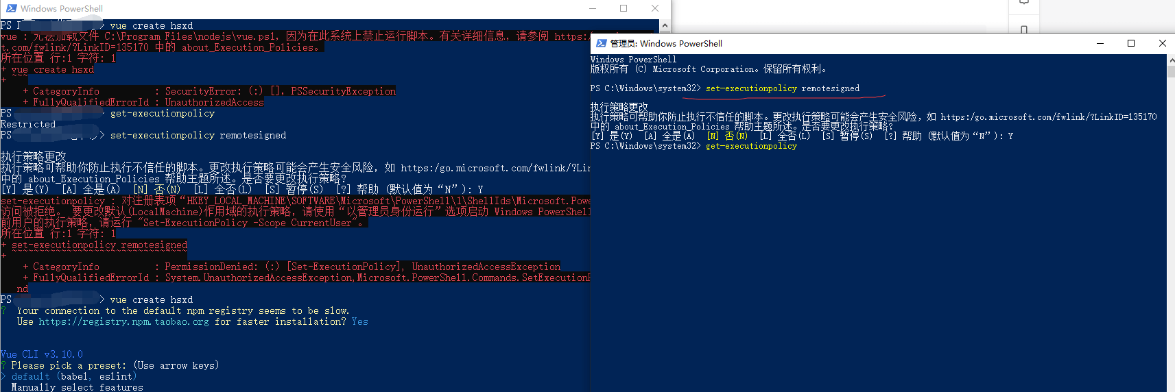 在管理员命令行下执行:set-executionpolicy remotesigned 即可