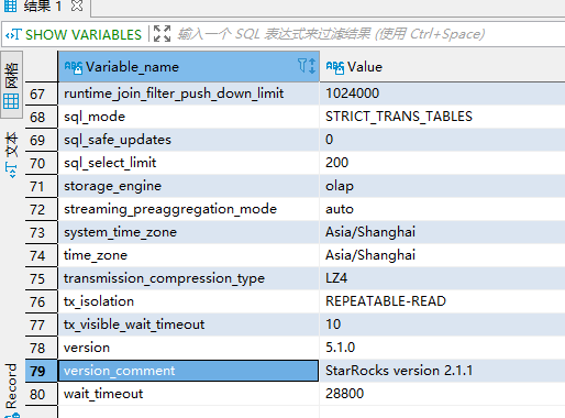 2.系统变量 version_comment 用于显示 StarRocks 的版本。不可更改。