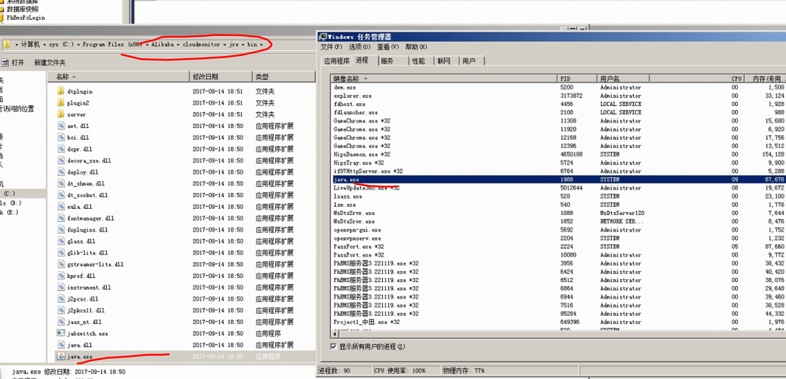 在一台阿里云2008的服务器上,没有业务java程序,但是运行了一个java程序,查看程序的目录,发现了 CloudMonitor 这个目录,一查是阿里云监控软件。
