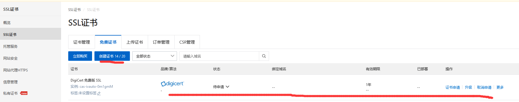 购买之后,可以进行证书申请,其实也挺简单的,SSL证书控制台