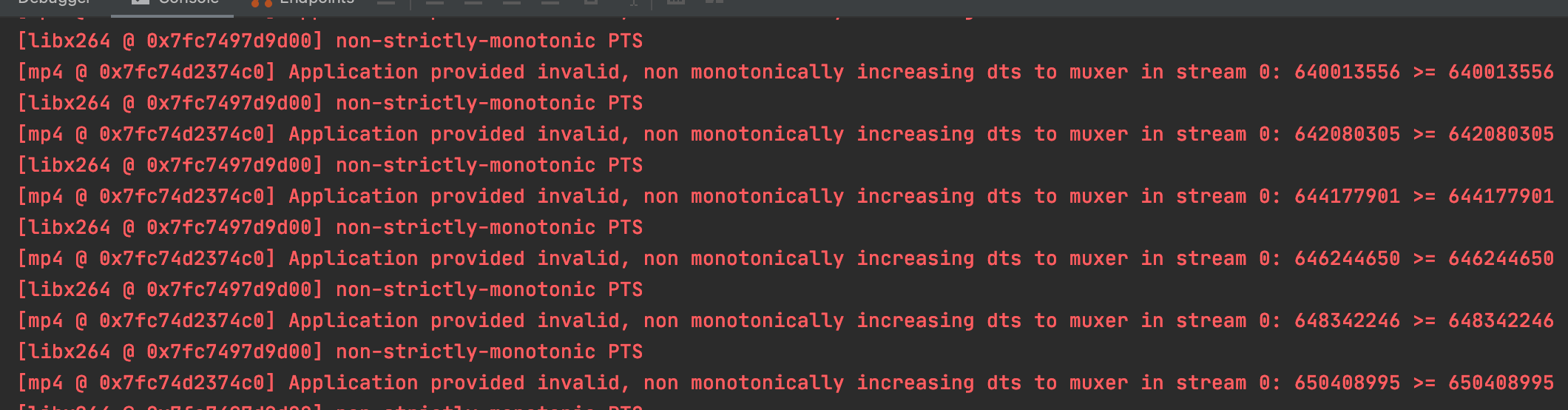 【3】.ffmpeg使用libx264编码时,为何一直出现x264 [warning]: non-strictly-monotonic PTS?