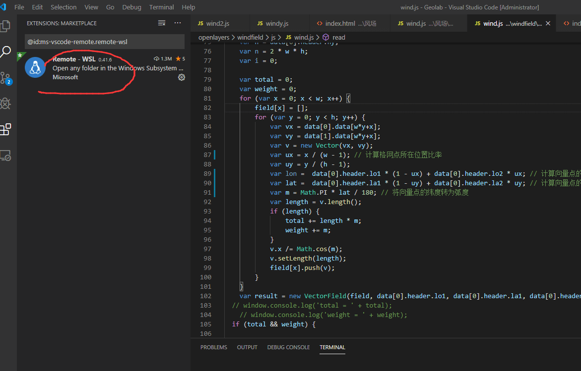 开启了这个功能,还意外的在vscode中提示我安装了一个叫Remote-WSL的工具