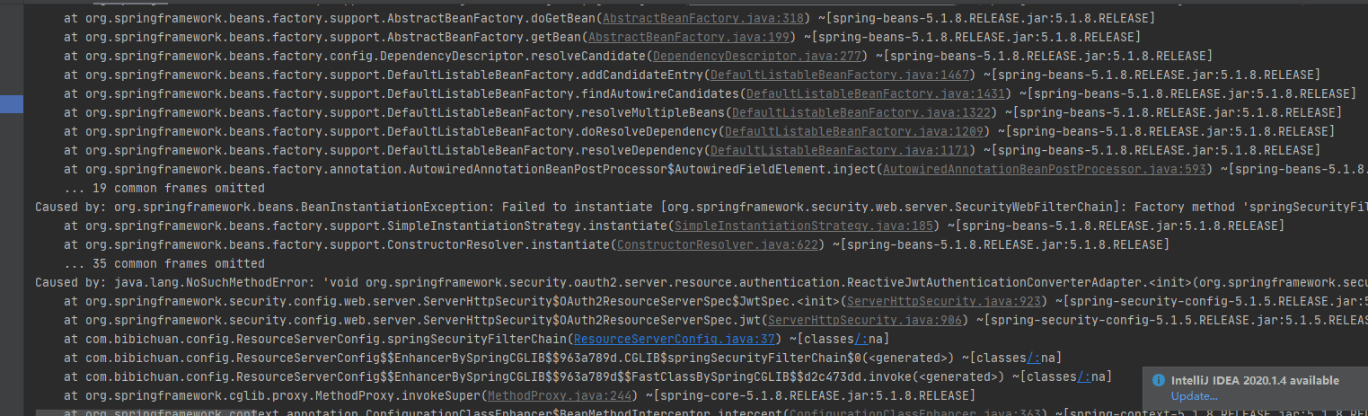 (1) java.lang.NoSuchMethodError: ‘void org.springframework.security.oauth2.server.resource.authentication.ReactiveJwtAuthenticationConverterAdapter
