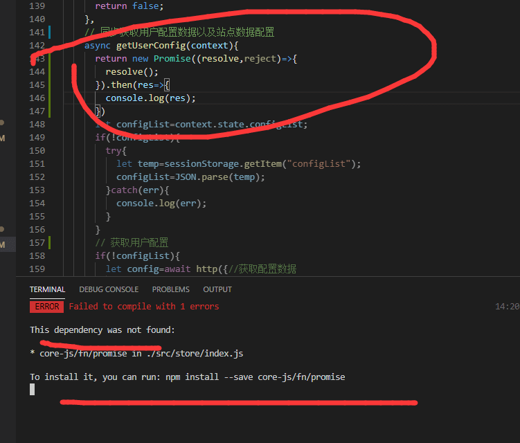5.This dependency was not found:* core-js/fn/promise in ./src/store/index.js