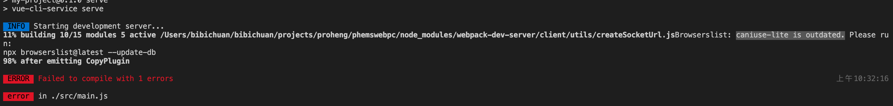 今天在mac上打包运行vue的程序的时候出现了这个问题,不知道是因为什么。