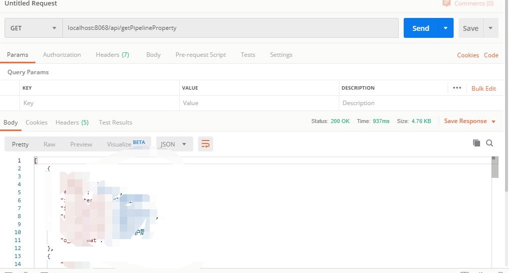7.通过Autowired,使用这个接口。 1 2 3 4 5 6 7 8 9 10 11 12 13 @RestController @RequestMapping(value = "/api",produces = "application/json;charset=UTF-8") public class ApiCtrl { private final Logger logger= LoggerFactory.getLogger(ApiCtrl.class); @Autowired private PipelinepropertyRep pipelinepropertyRep; @RequestMapping("getPipelineProperty") public List<Pipelineproperty> getPipelineProperty () { return pipelinepropertyRep.findAll(); } }