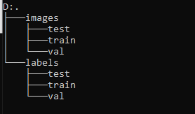 如果使用 label studio 进行的标注,可能还需要对数据集进行划分,划分为 train(训练集)、test(测试集)和 val(验证集)。在data目录下划分数据集,通常将数据集划分为训练集(70%)、验证集(20%)和测试集(10%)。