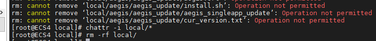 在使用rm -rf 命令删除文件的时候,出现了:cannot remove ‘local/aegis/aegis_update/aegis.crt’: Operation not permitted,可是我已经是处于root权限了。
