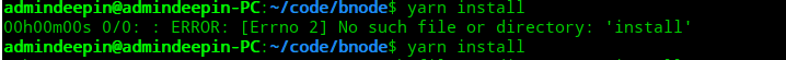 1.Yarn install command error No such file or directory: ‘install’
