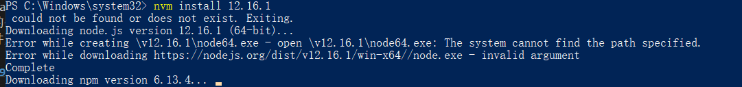 即便是将上面的问题解决了,设置了环境变量和settings.text文件,安装成功了nodejs,但还是出现问题了。