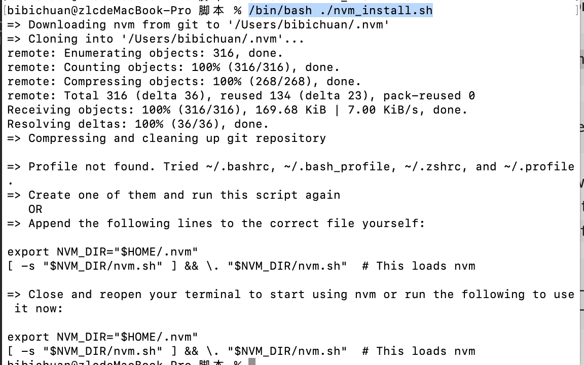 当我使用bash安装了nvm之后,退出终端,再进入,运行nvm,还是显示没有nvm命令。