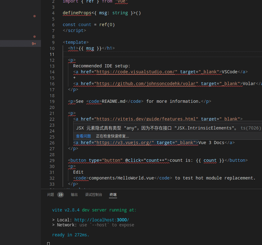 在使用 vite 创建vue-ts的模板之后,什么代码都没有改