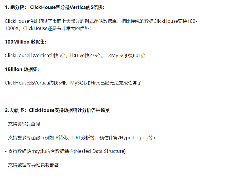 ClickHouse is a column-oriented database management system (DBMS) for online analytical processing of queries (OLAP)。(ClickHouse是面向列的数据库管理系统(DBMS),用于查询的在线分析处理(OLAP))。上一张图: