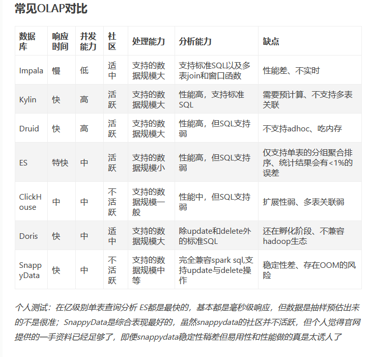 4.从携程性能测试case中重新认识clickhouse (这篇文章中我顺着SnappyData,我认识了kylin,还有其他的一些支持OLAP的数据库)