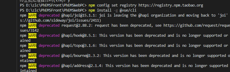 1.终端执行npm install -g @vue/cli的时候报错,请问@hapi/joi这是个啥? (安装vue/cli的时候出现了很多的警告)