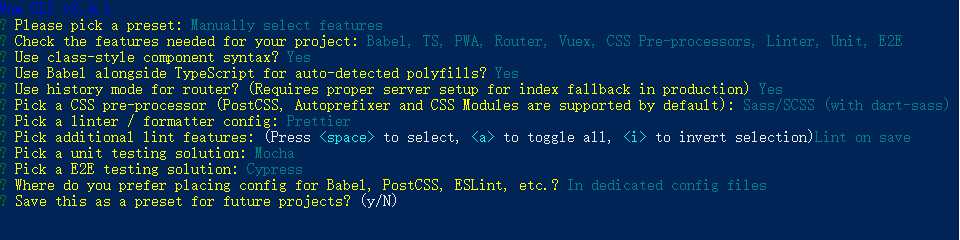 Save this as a preset for future projects? (Y/n) // 是否记录一下以便下次继续使用这套配置