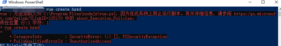 在管理员命令行下执行:set-executionpolicy remotesigned 即可