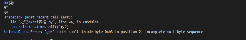 其中的度分秒都是中文字符串,这个使用用split分割函数,对数据进行分割,会出现:“UnicodeDecodeError: ‘gbk’ codec can’t decode byte 0xb3 in position 2: incomplete multibyte sequence”错误。