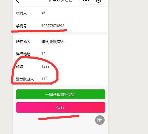 有一个奇怪的现象,就是我在data里面,有两个变量,一个是邮编,一个是紧急联系人,填完之后,直接保存,始终在验证函数中获取不到这两个的值。