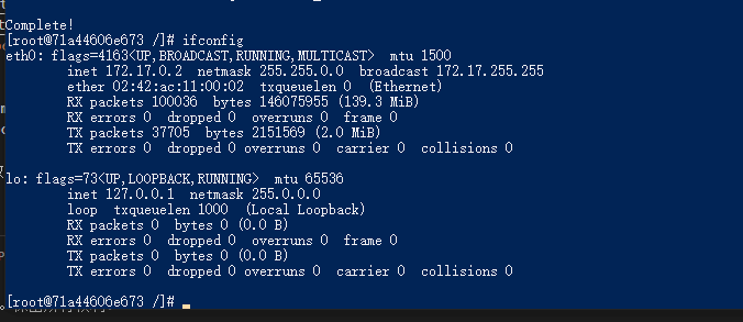 (1) 使用 ifconfig 查看容器CentOS的ip: