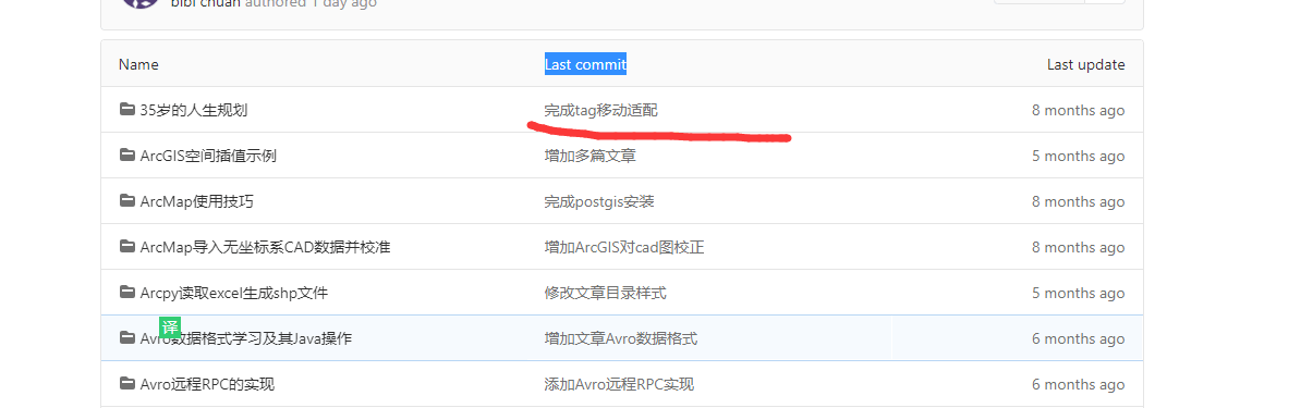 (1) 我重新创建了一个工程,第一次的时候,文件夹中没有中文,然后git commit -m 时填入了中文,可以显示中文的commit和update时间。