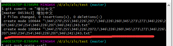 (2)然后我又添加了一个中文的路径,路径里面增加了中文的文章,再次使用add、commit、push,进行提交,最后中文无法显示了。