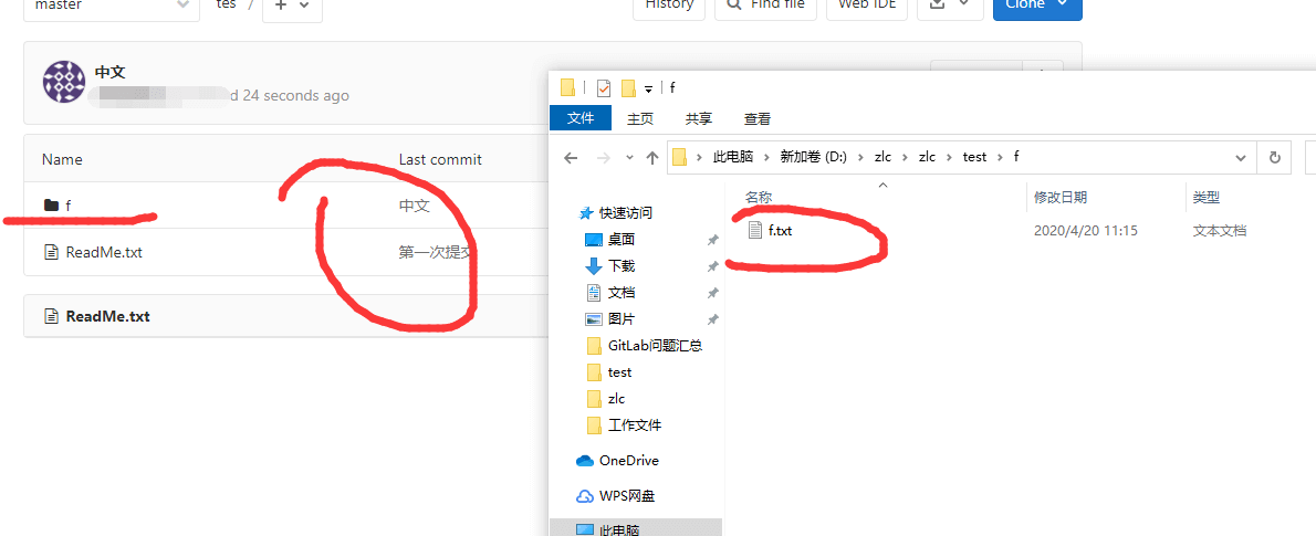 看来,是因为gitlab不支持中文文件夹,但是支持中文文件名,这真是奇怪啊。