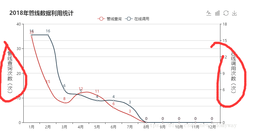 | const option = { grid: [ { show: false, left: 70, top: 40, bottom: 20, right: 70, }, ], textStyle: { color: 'white', }, tooltip: { formatter: '{c}', backgroundColor: 'transparent', borderColor: 'transparent', padding: 0, borderWidth: 0, textStyle: { color: 'red', fontSize: 16, fontWeight: 'bold', }, position: 'top', }, xAxis: { type: 'category', data: stateData.yearData, boundaryGap: false, }, yAxis: [ { type: 'value', offset: 15, splitLine: { lineStyle: { color: ['#fff'], type: 'dashed', }, }, position: 'left', axisTick: { show: true, }, scale: false, name: '面积(m²)', splitNumber: 5, min: stateData.mjYAxis.min, max: stateData.mjYAxis.max, interval: (stateData.mjYAxis.max - stateData.mjYAxis.min) / 5, }, { type: 'value', name: '增长率', position: 'right', offset: 15, nameTextStyle: { align: 'left' }, axisLabel: { formatter: '{value} %', }, axisLine: { lineStyle: { color: '#5e859e', width: 2, }, },