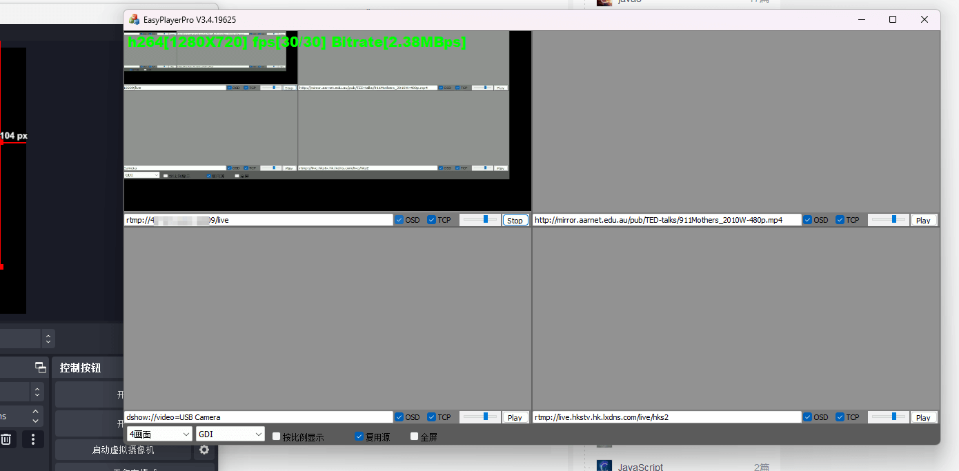我这里用了 easyplay 进行了简单的测试,使用了上面的直播,然后定义了自己的直播地址,发现可以直播了。