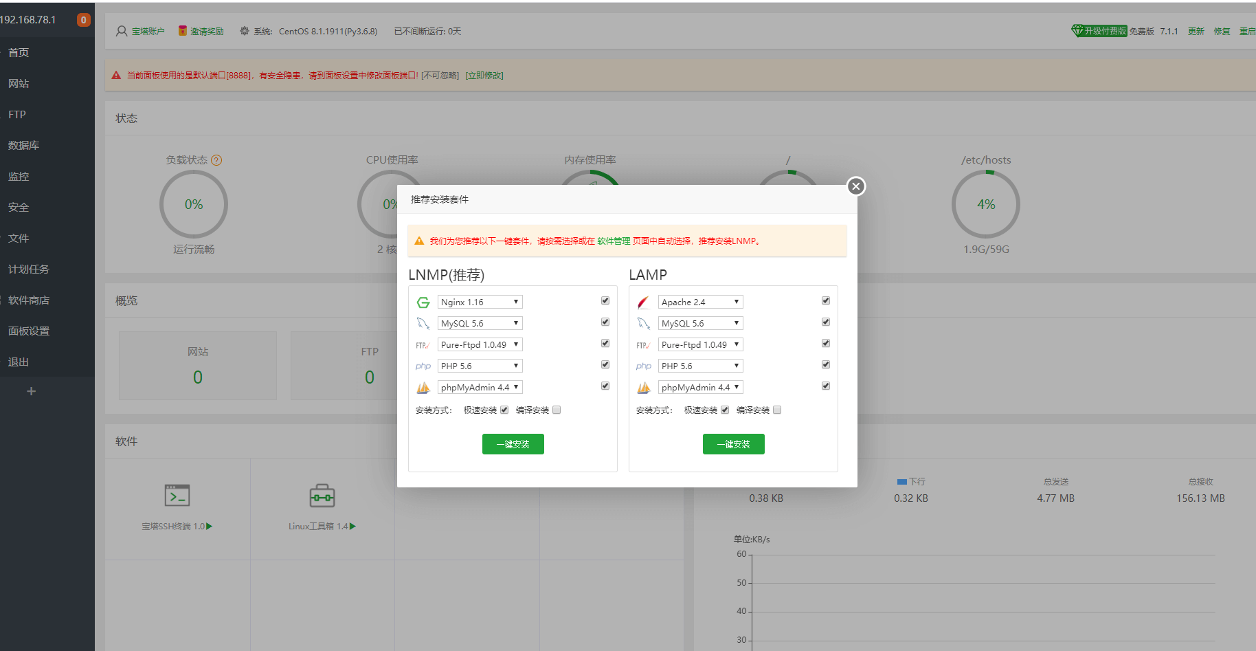 进入宝塔面板,然后按照推荐进行安装软件。软件的基本操作,我觉得没什么大的问题吧。