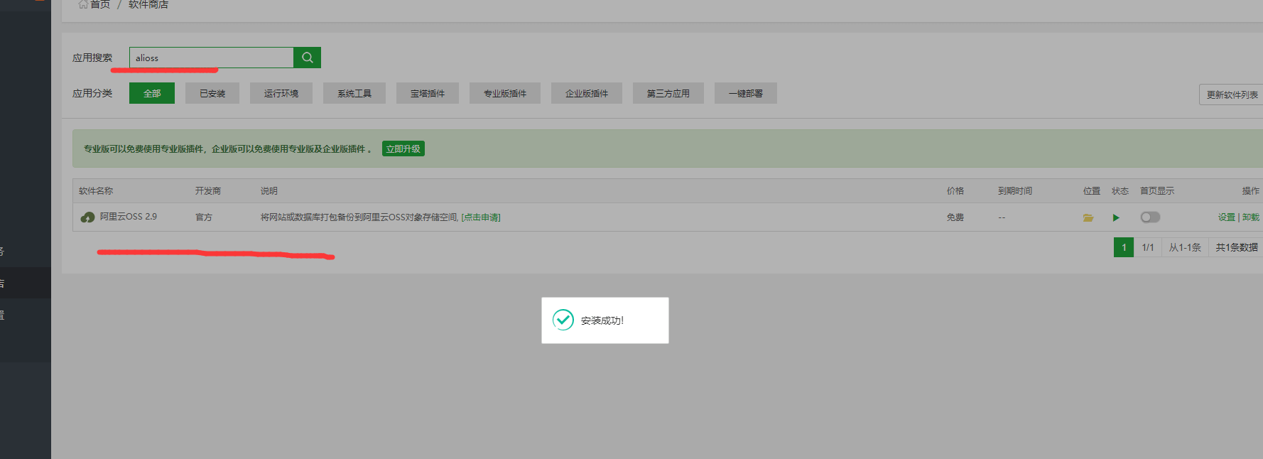 打开软件商店,搜索alioss插件,点击安装阿里云oss插件,然后进行阿里云oss地址设置,就可以在备份选择阿里云地址了。