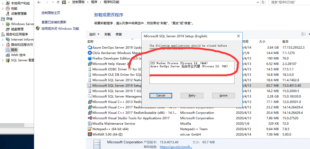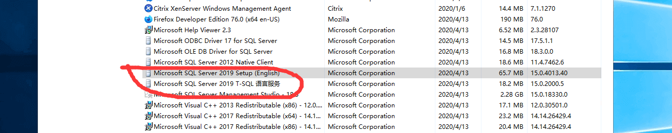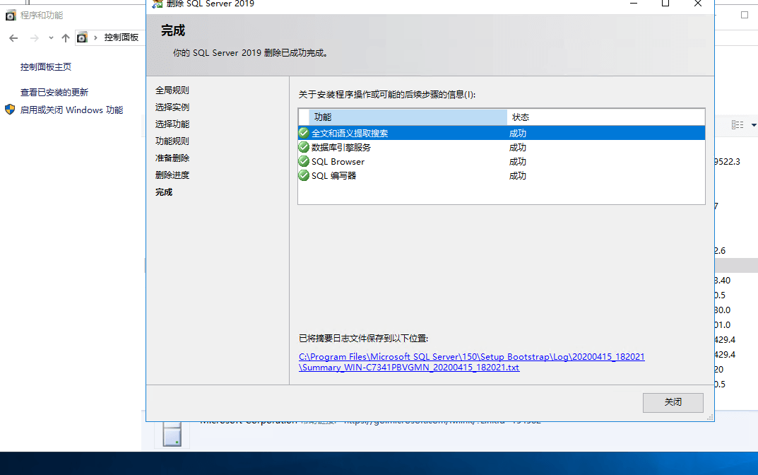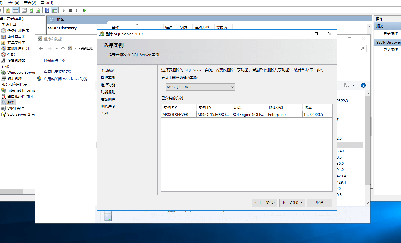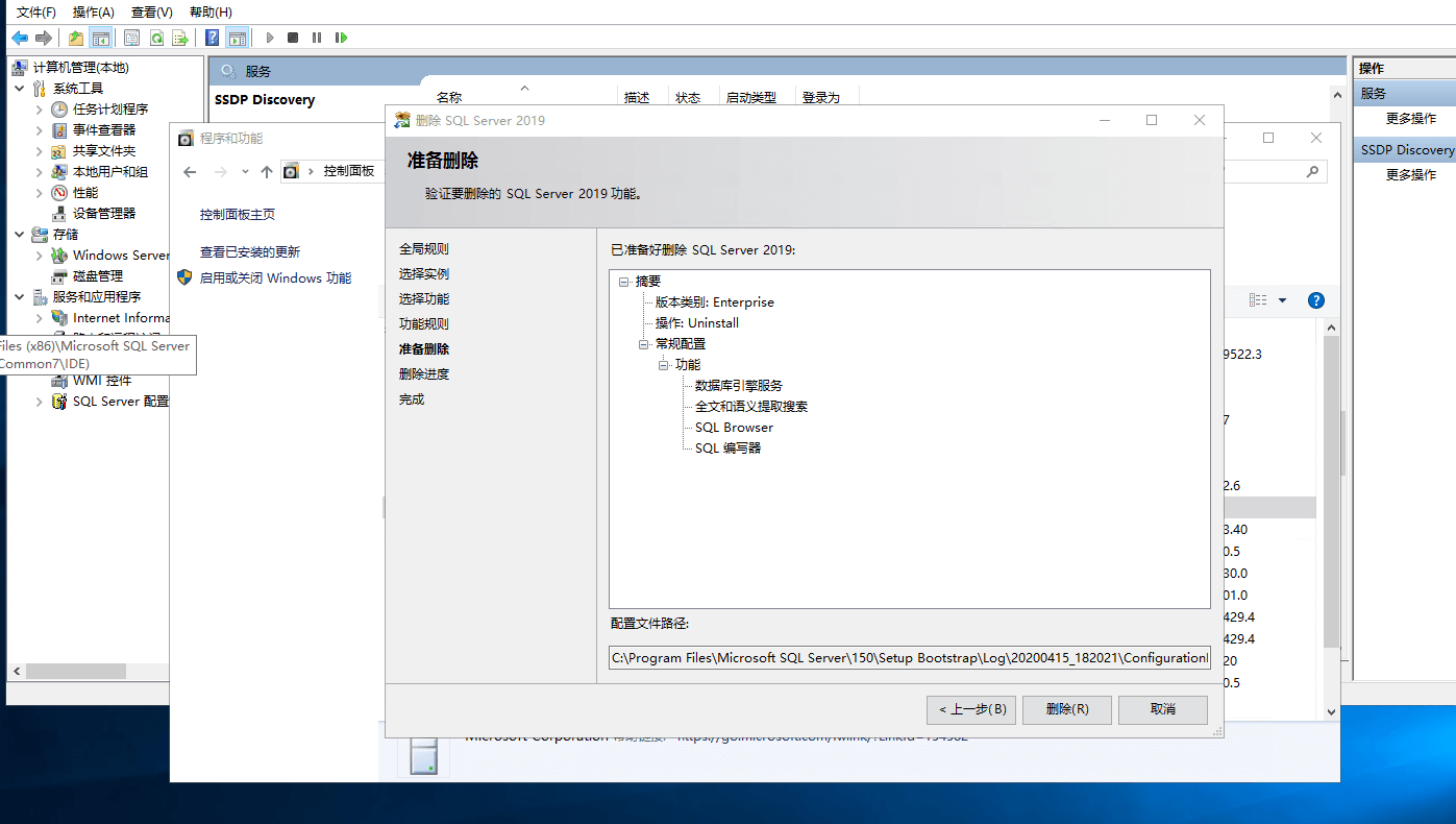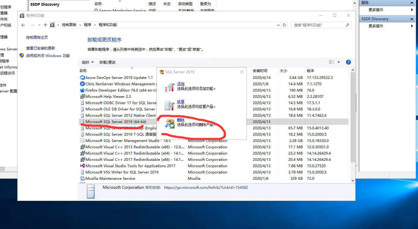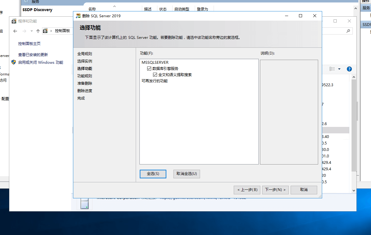 卸载Server 2019 SetUp和Server 2019 T-SQL语言服务
