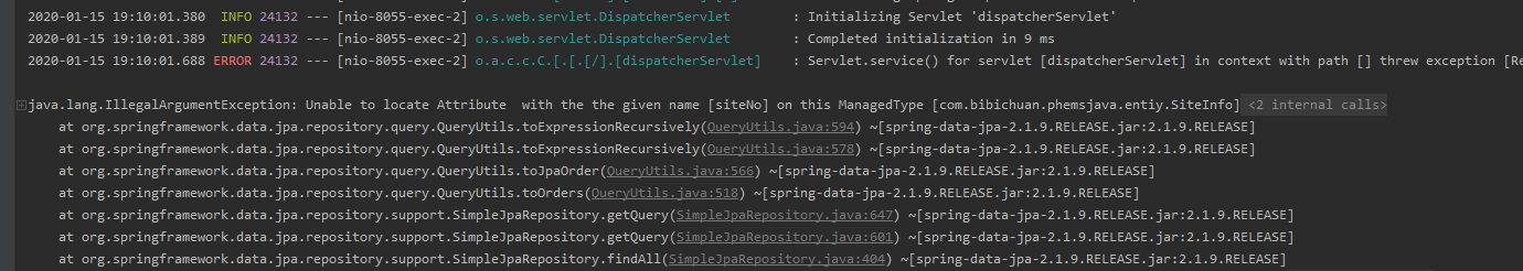 4.Spring Data JPA Unable to locate Attribute with the the given name (这里建议我将首字母改为小写)