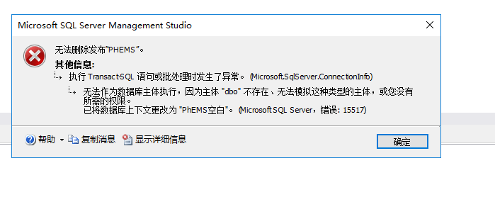 2.无法删除发布“PHEMS”,因为主体 “dbo” 不存在